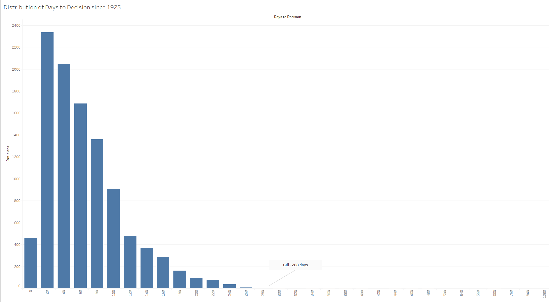 The case that took the justices the longest to decide was Gill v. Whitford which at 288 days pushed towards the upper limit of time the Court has taken to decide a case since Congress passed the Judiciary Act of 1925.