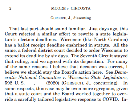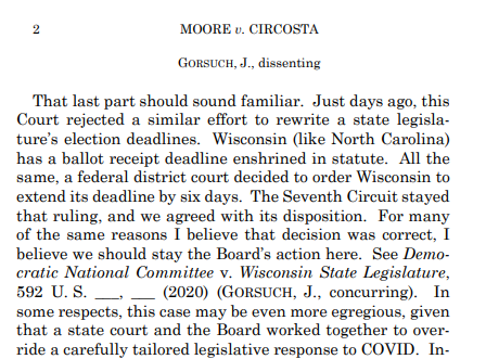 One risk of upholding state decisions though is that it can lead to inconsistent jurisprudential rules across jurisdictions. In dissent in Moore v. Circosta, Justice Gorsuch laments the different standards in Wisconsin and North Carolina and how the Court was not equally willing to sustain the constitutionality of state procedures in both instances.