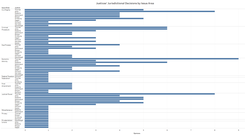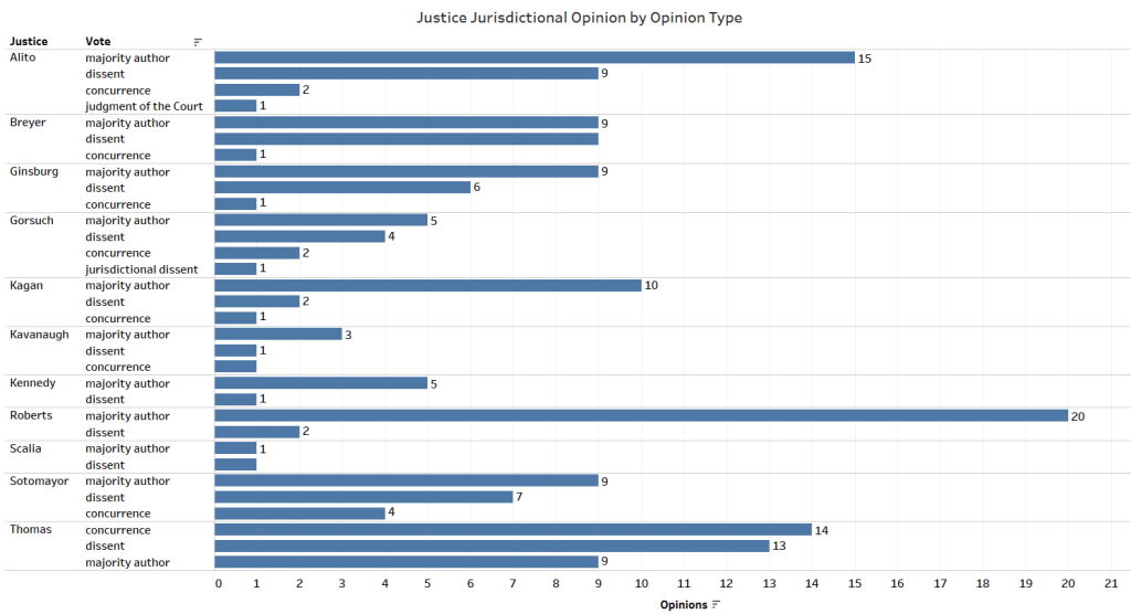 Before getting into how these Rules are utilized by the justices, we can probe the justices’ decisions by looking into what type of opinions, majority or secondary, they wrote when they brought up these principles.