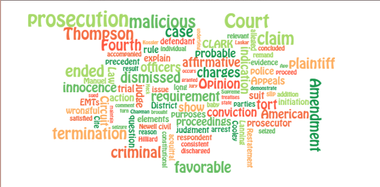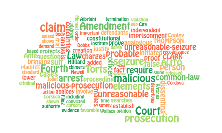 Below is an analysis from Thompson v. Clark (20-659) which was released this week. It was a 6-3 decision. First, here is a wordcloud (a visualization of the most dominant words used) of the majority opinion authored by Justice Kavanaugh