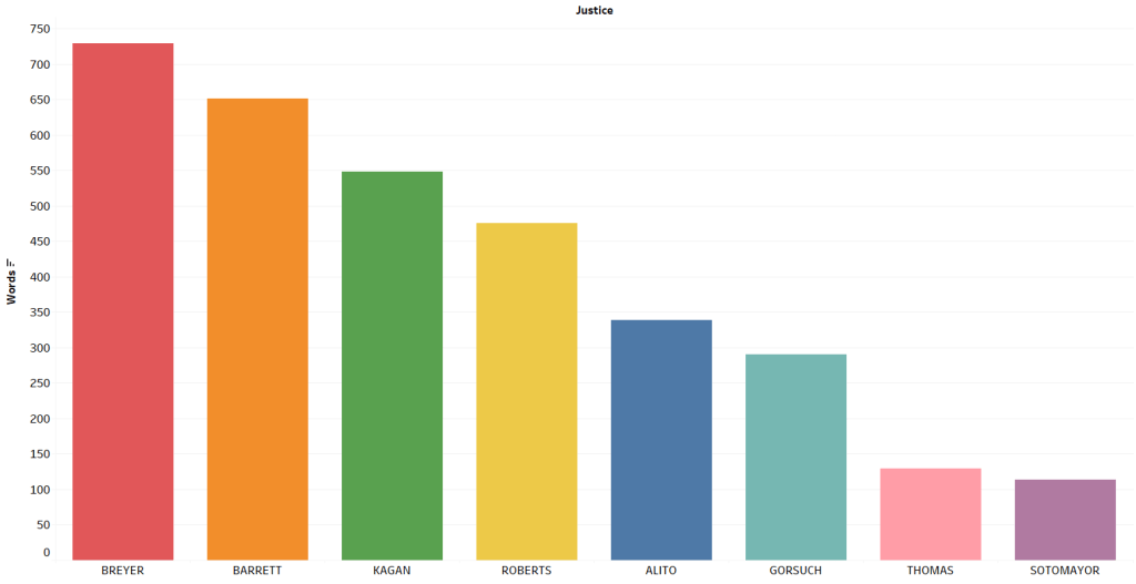 When broken down across the entire arguments. Justice Breyer spoke most of the justices, and then Justices Barrett and Kagan.