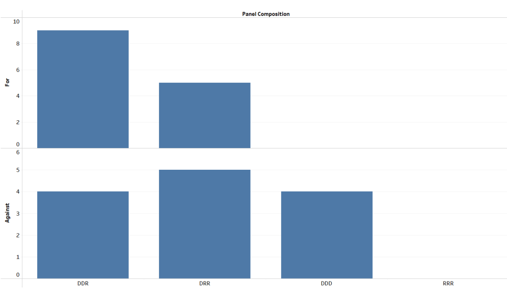 The panel compositions based on parties of appointing presidents in cases where there are no split votes are shown below: