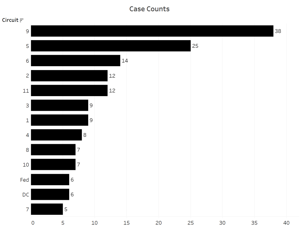 Here are the case counts by circuit for the three-year period focused on in this post: