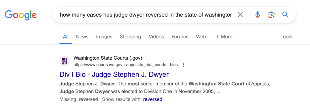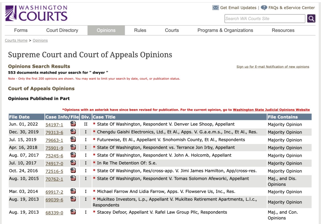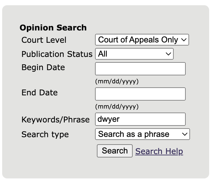 Now we search for Judge Dwyer in court of appeals – 20 minutes into the exercise, the associate must be getting really close. Drumroll…
