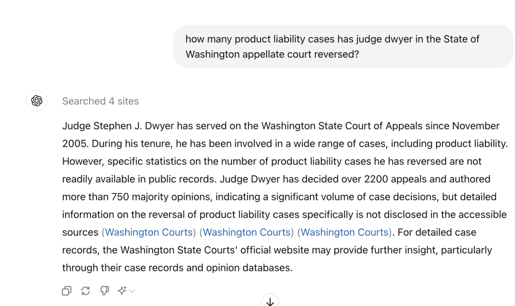 These are veteran attorneys who are the best in their business. They know the judges in their court from past cases before them. What they wanted was an specific answer and not to shoot from the hip. To get these data was no easy task. They had exhausted all available legal resources – including the well-established industry titans of legal reference, the upstart PE-backed companies with flashy websites and good old Senior Counsel Google, J.D. Oh, they also consulted the all-powerful Counsel chatGPT. Surely, among one of these great resources, the answer must have just popped out in seconds!