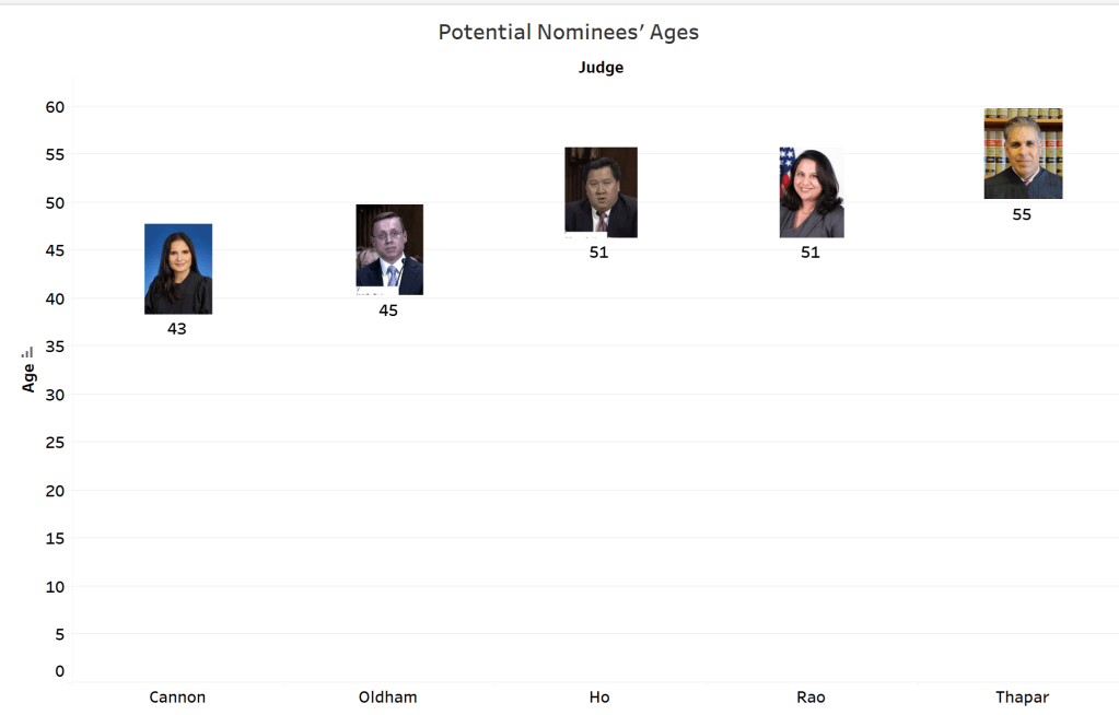 Along with their jurisprudence, the reason why four of the five current judges I think are likely candidates for the next nomination is that they clerked for either Thomas or Alito. Four of the five potential candidates are also currently federal appellate judges. Judge Rao is a judge for the D.C. Circuit which has in past proven the most likely circuit for a judicial selection to the Supreme Court due to the similarity in case types between the two courts thus allowing for a more parallel assessment of how a judge might behave as a Supreme Court Justice.