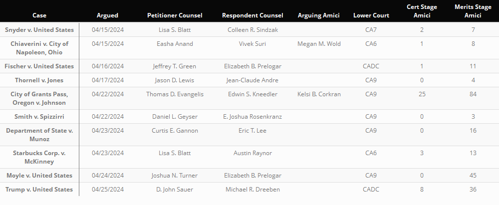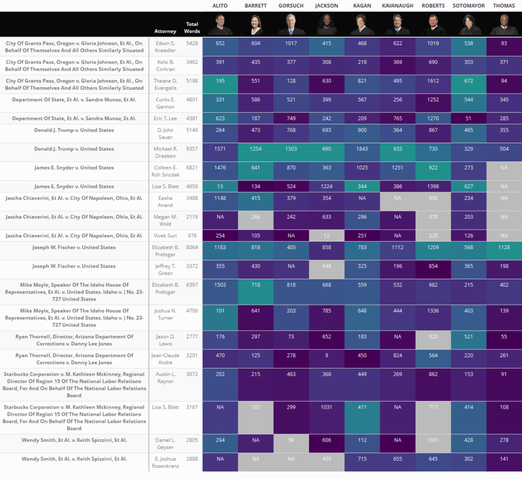 Words Spoken by Arguing Attorneys – By Argument (April Sitting 2024)
