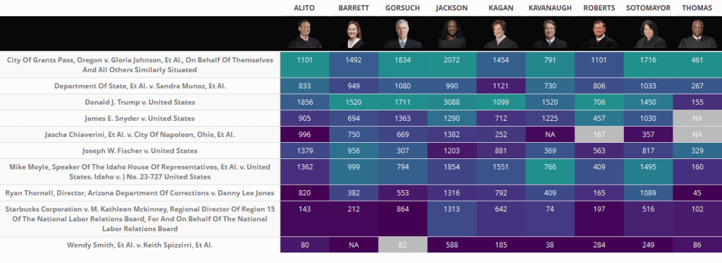 Words Spoken by Justice – Totals (April Sitting 2024)