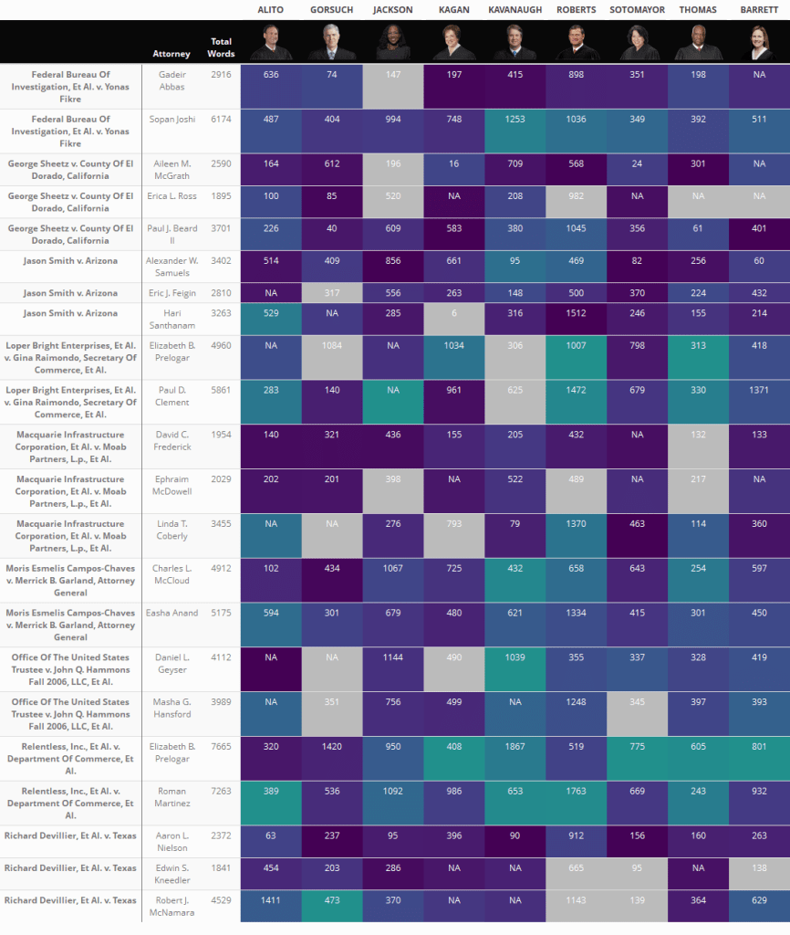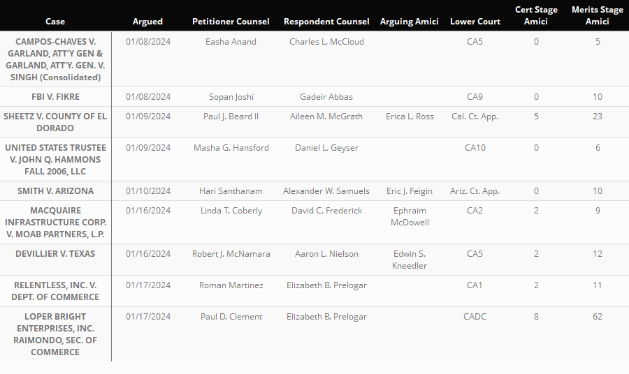Words Spoken by Arguing Attorneys – By Argument (January Sitting 2024)