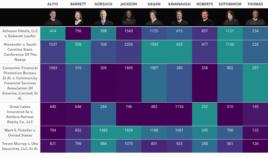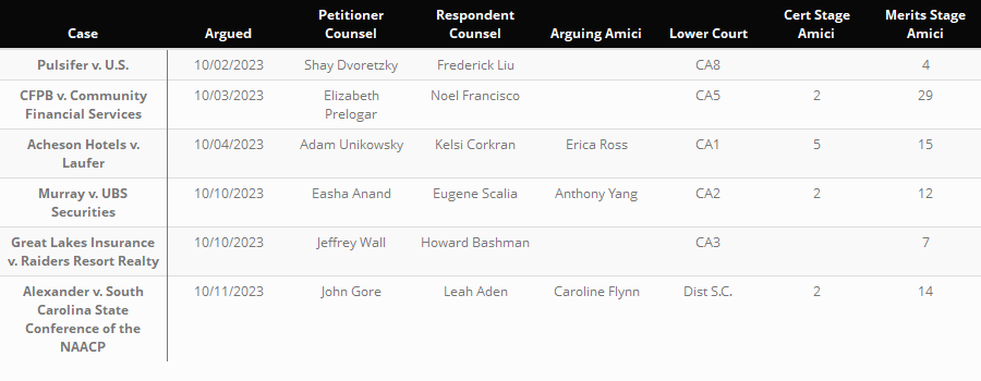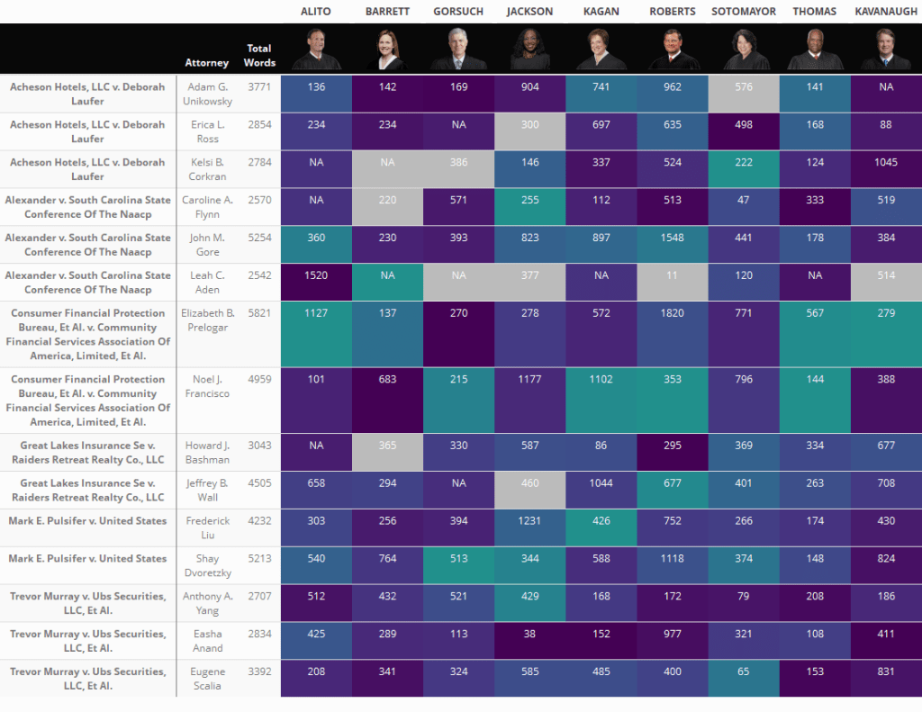 Words Spoken by Arguing Attorneys – By Argument (October Sitting 2023)